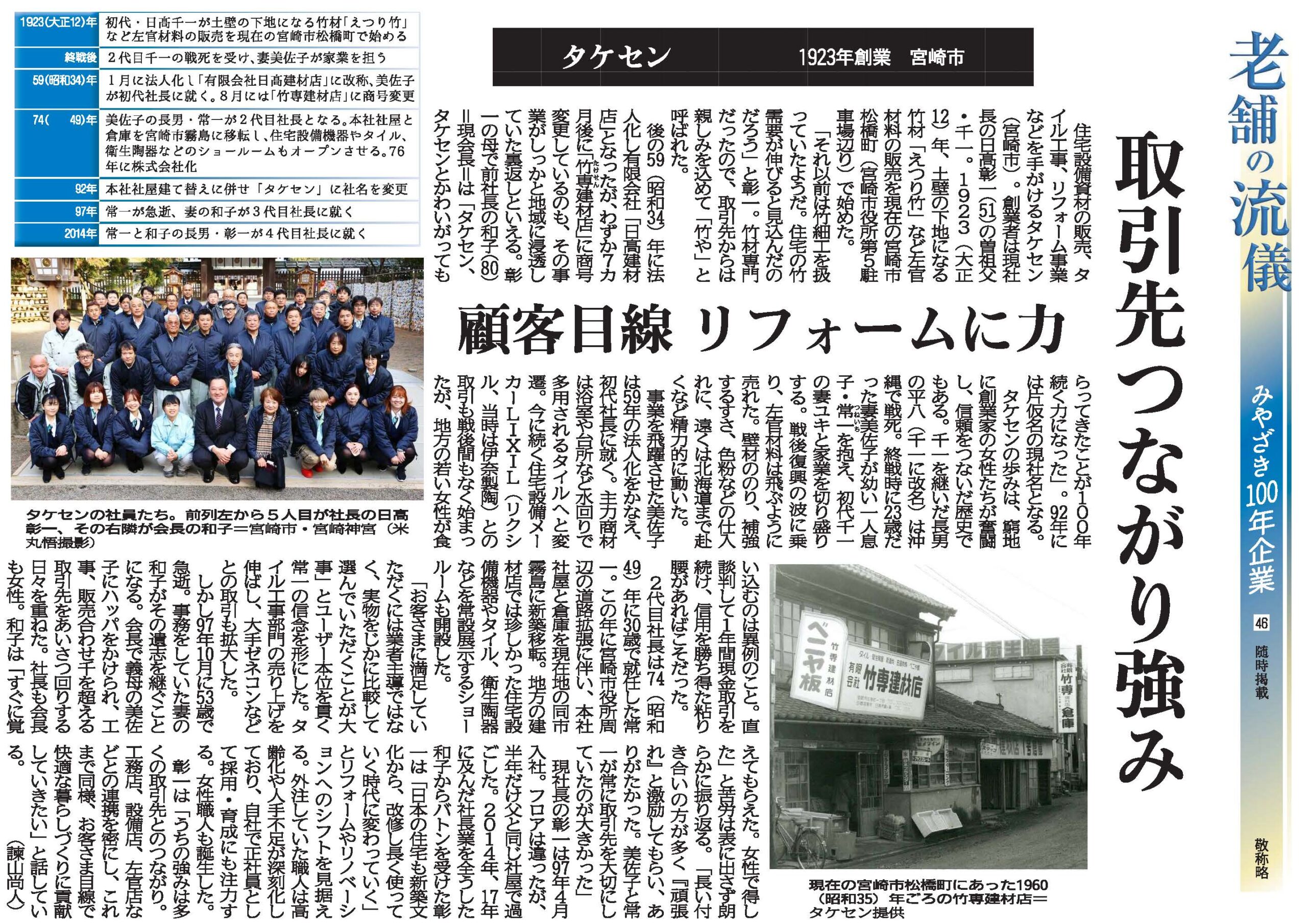 We have been able to celebrate our 100th anniversary by building trust one step at a time in Miyazaki Prefecture.